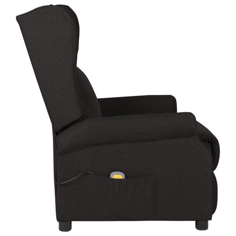 Облегнете се и се отпуснете в този изключително комфортен масажен стол! Функция за ръчно накланяне: Накланящият се стол е специално проектиран с 3 позиции на наклон, така че да можете да регулирате ръчно облегалката и поставката за крака според вашето удобство.Функция за вибрация: Представените 6 масажни точки ви позволяват да изпитате по-целенасочен масаж. Освен това включеното ръчно управление ви позволява да избирате различни програми за масаж. Функцията за масаж се захранва от USB конектор, който изисква сертифициран 5V USB захранващ източник (не е включен).Удобно седене: Дебело подплатената седалка, облегалката и широките подлакътници, покрити с текстил, осигуряват уютно и топло усещане, което ви кара да се чувствате като в прегръдка, докато седите. Тъканта се отличава със семпъл и изчистен вид и е дишаща и издръжлива.Здрава и стабилна рамка: Рамката, изработена от дърво и метал, осигурява здрава структура и стабилност. Този накланящ се фотьойл е удобен и издръжлив. Този уред може да се използва от деца над 8 години и лица с намалени физически, сензорни или ментални възможности или липса на опит и знания под надзор или ако са получили инструкции относно употребата на уреда по безопасен начин и разбират възможните опасности. Децата не трябва да си играят с уреда. Почистването и потребителската поддръжка не трябва да се извършват от деца без надзор. Захранването трябва да бъде само с безопасно изключително ниско напрежение, съответстващо на маркировката върху уреда. Включете USB конектора на уреда в USB гнездото на захранването. Моля, обърнете внимание да се използва само сертифицирано захранване DC 5V. По-високото напрежение може да доведе до прегряване и до повреда на устройството, както и до потенциален риск от пожар.