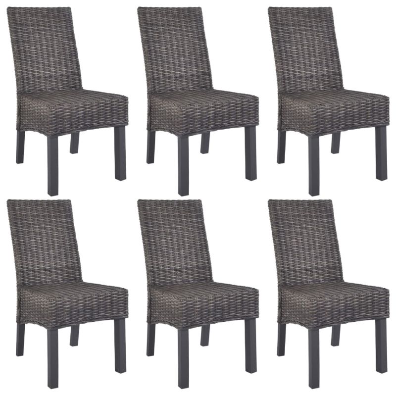 Трапезни столове, 6 бр, кафяви, кубу ратан и мангова дървесина