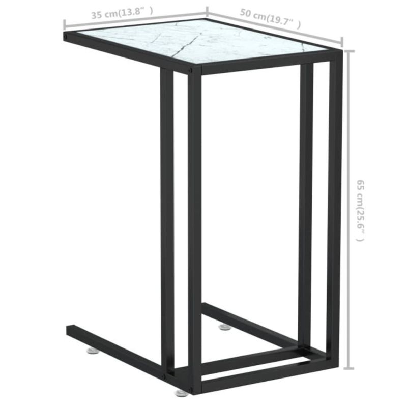 Странична маса за компютър, бял мрамор, 50x35x65 см, стъкло