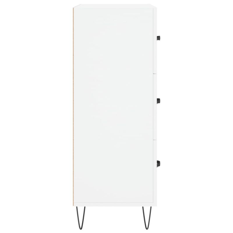 Този класически сайдборд има непреходен вид, което го прави идеално допълнение към вашия дом. Издържлив материал: Инженерната дървесина е с изключително качество с гладка повърхност и също така се отличава със здравина, стабилност и устойчивост на влага.Достатъчно място за съхранение: С 3 чекмеджета, бюфетът осигурява достатъчно място за поддържане на вашите ежедневни неща, организирани и подръка.Декоративна функция: Стабилната горна част на този шкаф е идеална за подреждане на декоративни предмети, фоторамки и саксийни растения.Метални крака: Металните крака на шкафа за съхранение добавят спокоен стил към вашия интериор, като същевременно гарантират стабилност. Внимание:За предотвратяване на преобръщане този продукт трябва да се използва с предоставения анкер за стена.