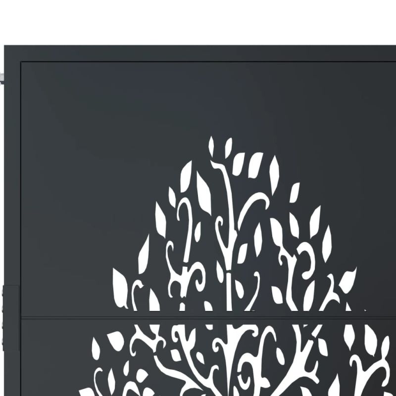 Тази градинска порта, отличаваща се с перфектна комбинация от здравина и елегантност, е идеална врата за оградата около вашата градина или вътрешен двор. Издръжлив материал: Стоманата е изключително твърд и здрав материал. Тя предлага здравина и стабилност. Поцинковането осигурява по-добра защита срещу корозия и е полезно за продукти, които ще се използват на открито, както и при неблагоприятни условия. А праховото покритие върху стоманата създава защитен слой срещу износване.Лазерно изрязан дизайн: Оградната порта има красив лазерно изрязан дизайн, който добавя уникален чар към вашия дом.Заключваща се система: Външната порта е оборудвана със заключваща се система за допълнителна сигурност.Лесна за сглобяване: Входната врата се предлага в комплект с два стълба с фланцови плочи и монтажни аксесоари за лесен монтаж. Не използвайте този артикул, ако някой от компонентите е счупен, скъсан или липсва.