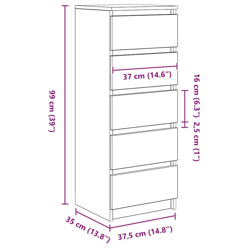 Бюфет с чекмеджета, бял, 37,5x35x99 см, инженерно дърво