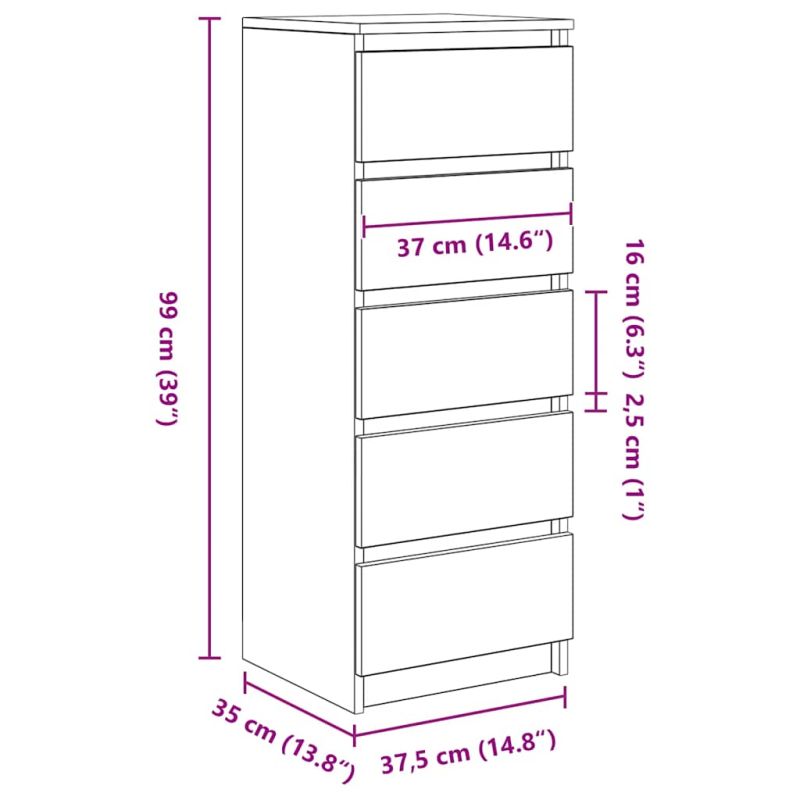 Бюфет с чекмеджета, черен дъб, 37,5x35x99 см, инженерно дърво