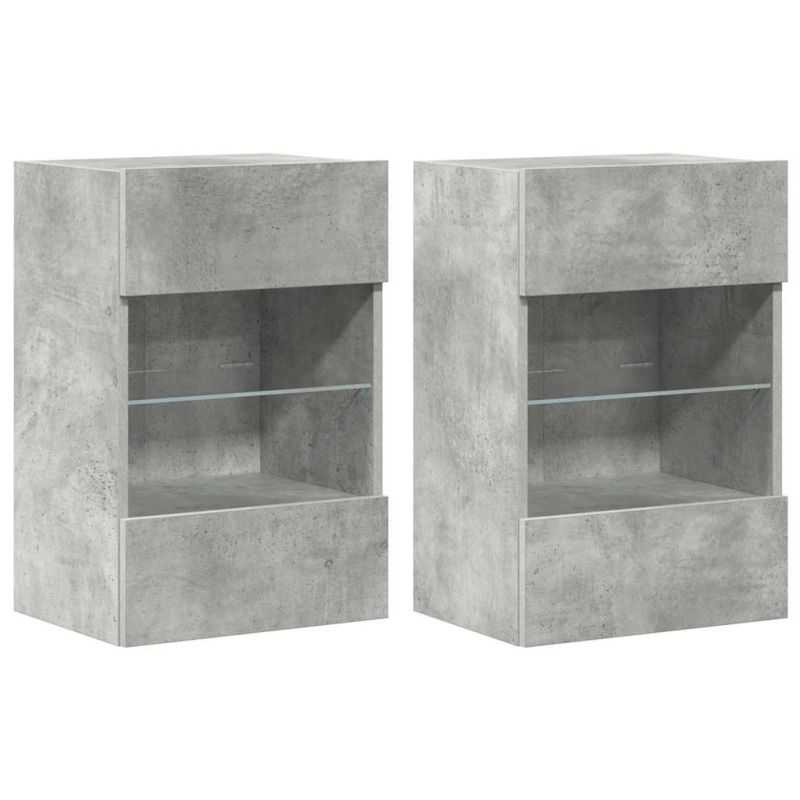 Начало Дом и градина Мебели Секции и поставки за телевизори Стенни шкафове с LED светлини за телевизор, 2 бр, бетонно сив, 40x30x60,5 см