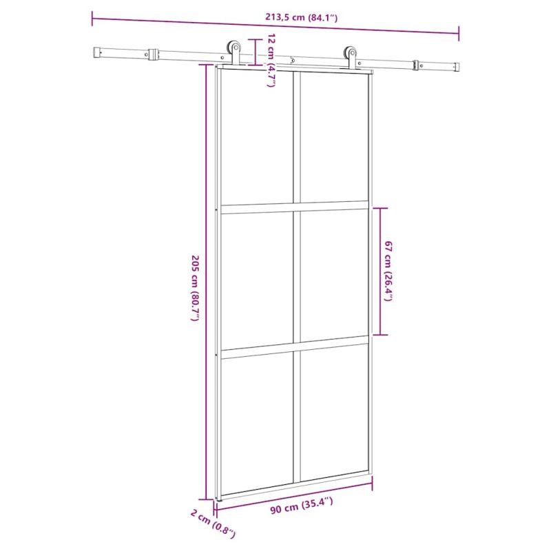 Плъзгаща се врата с обков 90x205 см Закалено стъкло&Алуминий