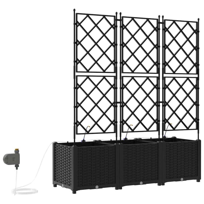 Градинска саксия 3 pcs Черен Пластмаса