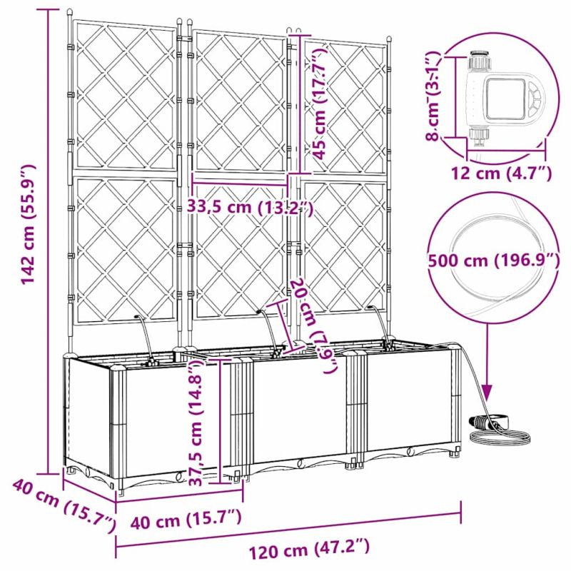 Този градински сандък с поливна система е идеален за любителите на растенията. Създаден е за хора, които ценят простотата и практичността, и има елегантен вид, който ще направи всяка градина или тераса по-красиви. Стилът му е минималистичен и отразява съвременността, добавяйки пространство, където да покажете любимите си растения. Представете си как този стилен сандък заема своето място в градината ви, побирайки всякакви цветя и билки, за да оживи мястото. Пластмасова конструкция: Създаден от здрава пластмаса, този сандък е проектиран да издържи на времето и да изглежда все така чудесно независимо от метеорологичните условия. Поливна система: С вградена самополивна система, която помага на растенията да растат, без да се налага да ги поливате всеки ден. Перфектно за заети хора. Модерен стил: Неговият иновативен дизайн го прави идеален за съвременни пространства, добавяйки стил с прости линии и минималистичен вид. Специално за открито: Създаден да бъде използван навън, осигурявайки стабилна основа за вашите растения, устоим на слънце и дъжд. Грижа и поддръжка: Много лесен за поддръжка - просто го избърсвайте и проверявайте ставките, за да е стабилен. Винаги го поставяйте на равна повърхност. Този продукт не трябва да се изхвърля заедно с други битови отпадъци в Европейския съюз. Поради примесите в чешмяната вода в свързващите части има филтри от неръждаема стомана, които трябва да се почистват своевременно, за да се избегне запушване. Този продукт не е против замръзване, под 1 ℃, моля, извадете и върнете обратно стаята, вътрешната вода се излива, за да се съхранява добро замръзване пукнатина не е в обхвата на гаранцията.