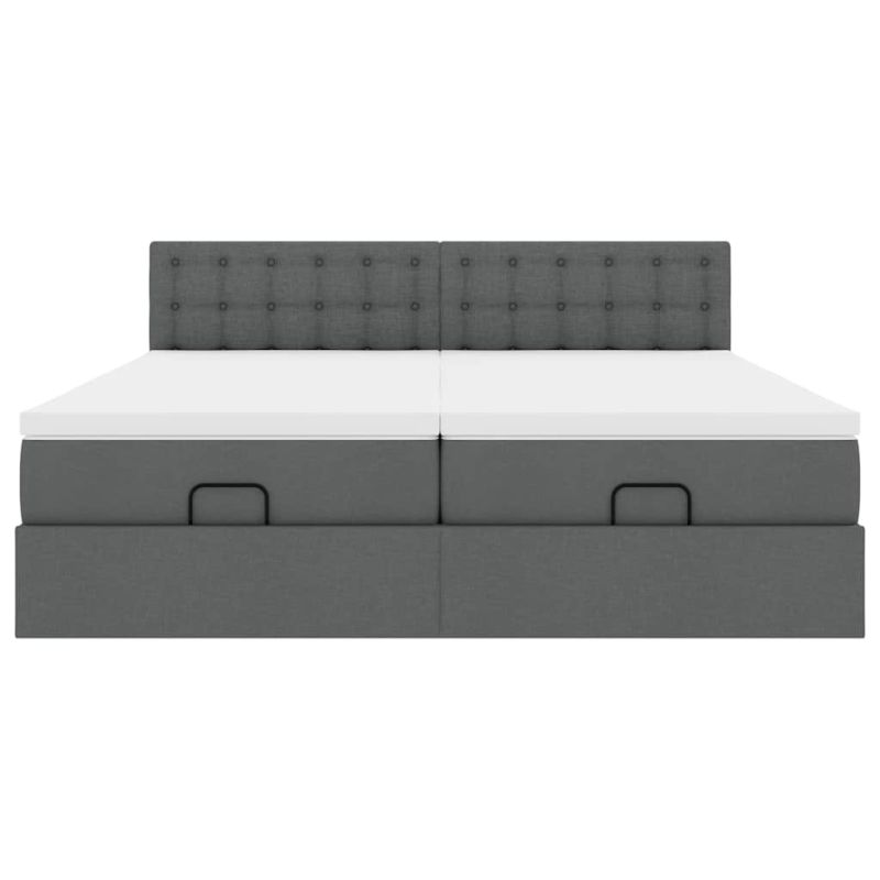 Използвайте това легло с матрак, за да се насладите на спокоен нощен сън! То ви предлага едновременно решение за съхранение и комфортен сън. Мек и издръжлив материал: Полиестерната тъкан предлага комбинация от мекота, дишане и издръжливост, гарантирайки ви да изпитате максимален комфорт и уют.Матрак с джоб пружини: Този матрак с джоб пружини има индивидуални пружини с джобчета, които работят независимо, за да осигурят персонализирана опора, като реагират само на натиска във всяка област. Този дизайн предотвратява "свличането" към средата на матрака и намалява прехвърлянето на движение в сравнение с традиционните матраци с отворени намотки. Всяка покет пружина поддържа тялото индивидуално.Достатъчно място за съхранение под леглото: Благодарение на хидравличния повдигащ механизъм рамката на леглото предлага обширно пространство за съхранение под леглото, което увеличава пространството, без да заема допълнителна площ. Само с едно издърпване на дръжката основата на ламелите се повдига плавно, което ви позволява да прибирате вещите си бързо и без усилие.Удобен горен матрак: Този топ матрак подобрява опората и комфорта със своята мека, дишаща повърхност, като същевременно удължава живота на вашия матрак. Подвижният му калъф позволява лесно изпиране, което прави поддръжката лесна. Добре е да се знае:Това двойно легло се състои от две единични легла, като всяка ламелна основа може да се повдига самостоятелно.От хигиенни съображения матракът не може да бъде върнат, ако опаковката е отстранена или отворена.