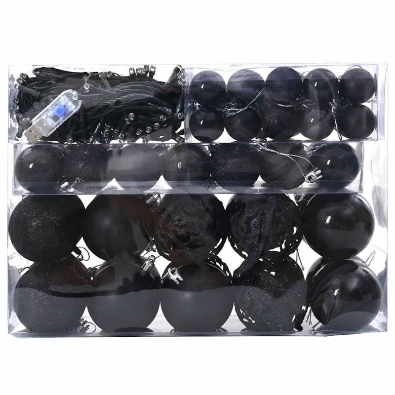 Комплект коледни топки 61 pcs Черно Пластмаса
