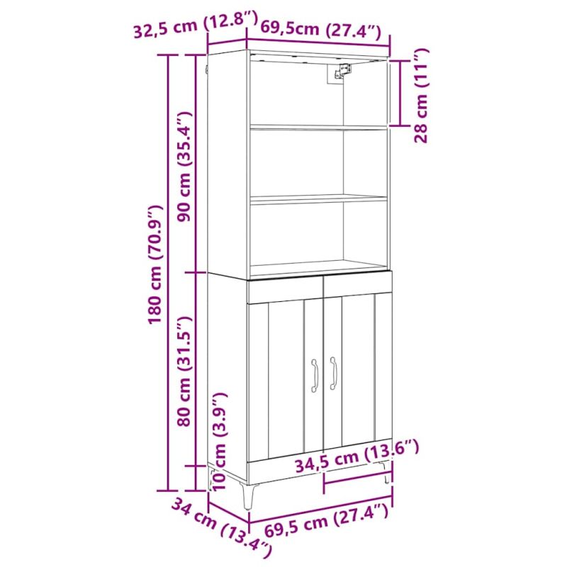 Този хайборд е перфектното допълнение към всяка трапезария или всекидневна. Модерният му дизайн съчетава простота и функционалност. С изчистените прави линии и правоъгълната форма, той перфектно допълва съвременните интериори, предлагайки много опции за съхранение с стил. Конструкция от инженерна дървесина Този хайборд е направен от качествена инженерна дървесина, известна с издръжливостта си. Тя осигурява дълготрайна употреба без да изглежда износена. Компонентите са съединени, за да създадат стилен и здрав шкаф, който се вписва в модерния дом. Адаптивна система от рафтове Вътре хайбордът разполага с плоски рафтове, които могат да поберат всичко от посуда до декоративни предмети. Регулируемите рафтове позволяват лесно персонализиране на пространството, което го прави идеален за всякакви нужди от съхранение. Здрави железни крака Хайбордът е стабилен, благодарение на железните крака, които придават индустриален вид. Те се съчетават перфектно с дизайна, осигурявайки здравина и стил. Разнообразни приложения Идеален за трапезарии или всекидневни, този хайборд предлага практично решение за съхранение и показване на предмети. Той съчетава стил и функционалност, което го прави чудесен избор за всяко пространство. Простота в поддръжката Поддържането на този хайборд е много лесно - просто почиствайте редовно и използвайте влажна кърпа за по-подробно почистване. Устойчивата му повърхност гарантира, че запазва добрия си вид с минимални усилия.