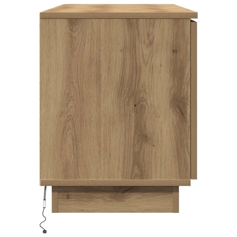 Този ТВ шкаф е перфектен за всеки, който иска да обнови дневната си. С модерен и елегантен дизайн, той предлага проста и функционална рамка, която идеално се вписва в минималистични и съвременни интериори. Гладката повърхност от инженерен дървен материал придава изискван вид, който лесно се комбинира с различен декор, като съчетава стил с удобство. Освен това, шкафът има LED осветление, което добавя шушулки на изтънченост, докато осигурява атмосферен светлик, който подобрява всяко изживяване при гледане. Изработка от инженерна дървесина: Изработен от здрав инженерен дървен материал, шкафът предлага дълготрайност и красиво покритие. Материалът е избран заради силата и устойчивостта си на деформация, гарантирайки стабилност при различни условия със стилен вид. Функционални LED светлини: Вградените LED ленти предлагат разнообразни осветителни опции, осветявайки дискретно зоната около вашия телевизор. Идеални за кино вечери или акцентно осветление, те подобряват атмосферата, без да тежат на помещенията. USB свързаност: Шкафът е с USB портове, които предлагат гъвкав и енергийно ефективен начин за работа на осветлението. Тази свързаност осигурява лесна интеграция с вашата съществуваща технологична установка. Просторно съхранение: С различни отделения, шкафът предлага достатъчно място за медийни устройства и аксесоари. Правоъгълната форма осигурява ефективна организация, която помага да поддържате дома си подреден. Детайли за сглобяване: Нужни са двама души и отвертка за сглобяване, осигурявайки стабилно и сигурно строителство, което отлично допълва елегантния им вид. Моля, обърнете внимание, че трябва да използвате само сертифициран вход DC 5V. По-високото напрежение може да доведе до прегряване и повреда на устройството и потенциален риск от пожар. Не свързвайте този продукт към захранване, различно от описаното в ръководството, на табелката с данни или изрично препоръчано от vidaXL. Този уред не трябва да се използва от деца под 15 години, както и от лица с намалени физически, сетивни или умствени способности или с липса на опит и познания относно използването на електронни уреди. Електричеството е опасно. Повредите и неправилният монтаж, употреба или модификации (подмяна на отделни компоненти) могат да доведат до повреда на уреда, което да доведе до токов удар и опасност за потребителя. Не използвайте този продукт във взривоопасна атмосфера, като например при наличие на запалими течности, газове и прах, или при температура над 50 градуса по Целзий. Не включвайте продукта, ако свързващият кабел или захранването са видимо повредени. Ако външният гъвкав кабел или захранващ кабел на това осветително тяло е повреден, той трябва да бъде заменен изключително от производителя или негов сервизен агент, или от подобно квалифицирано лице, за да се избегне опасност. Изключете захранването по време на монтажа и поддръжката. Уверете се, че крушките са изстинали. Светлинният източник на това осветително тяло не може да се заменя. Когато светлинният източник достигне края на своя живот, цялото осветително тяло трябва да се замени. Само за употреба на закрито, не използвайте този продукт на открито.