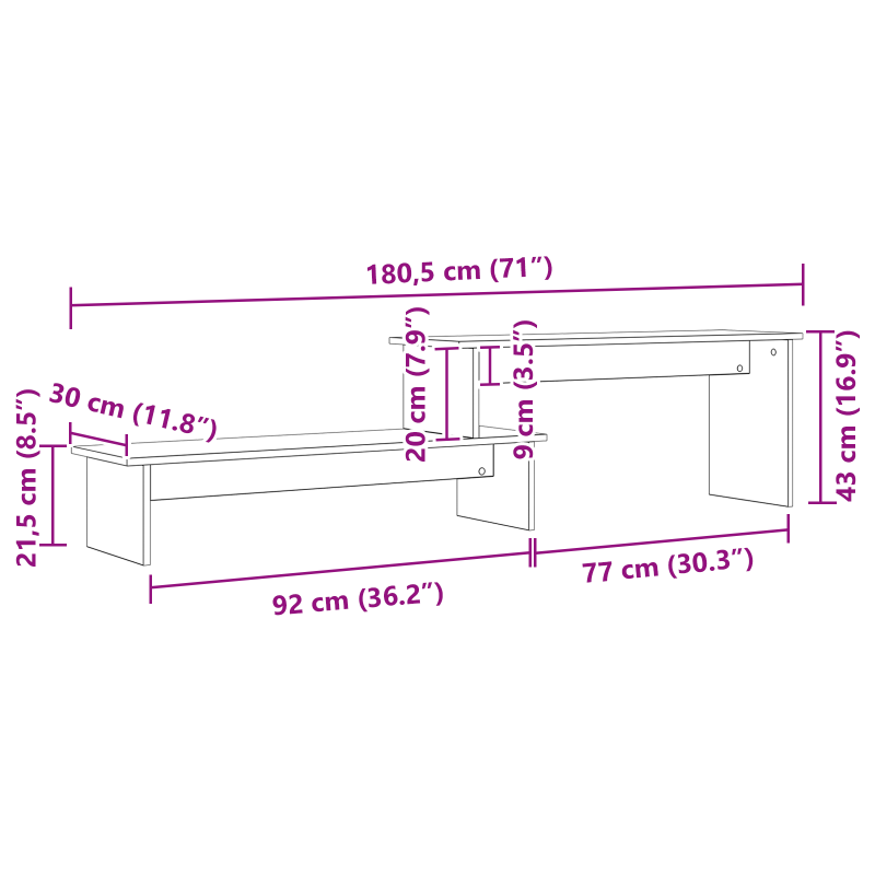 Този стенен ТВ шкаф перфектно съчетава стил и практичност. С правоъгълната си форма той използва пространството максимално, без да жертва вида си. Идеален е за съвременни домове и предлага начин да организирате всекидневната без компромиси с естетиката. С чистите си линии и минималистичния си дизайн той се вписва чудесно в модерен интериор, съчетавайки функционалност и елегантност. Изработен от инженерна дървесина Комплектът е изработен от устойчиво инженерно дърво, което съчетава здравина и модерен стил. Този материал е устойчив на износване и многофункционален. Многофункционални рафтове Рафтовете са проектирани така, че да побират разнообразие от вещи – от техника до декорация. Гъвкавостта им позволява удобно организиране. Стенен монтаж Този шкаф се монтира на стената, което спестява място и създава подреден вид. Лесно става почистването под него. Лесна инсталация Ще получите и инструкции за сглобяване, така че две души да могат бързо и лесно да го инсталират. Комплексни опции за съхранение Шкафът има проектирани отделения за медийни устройства и декорации, помага ви да поддържате ред в пространството.