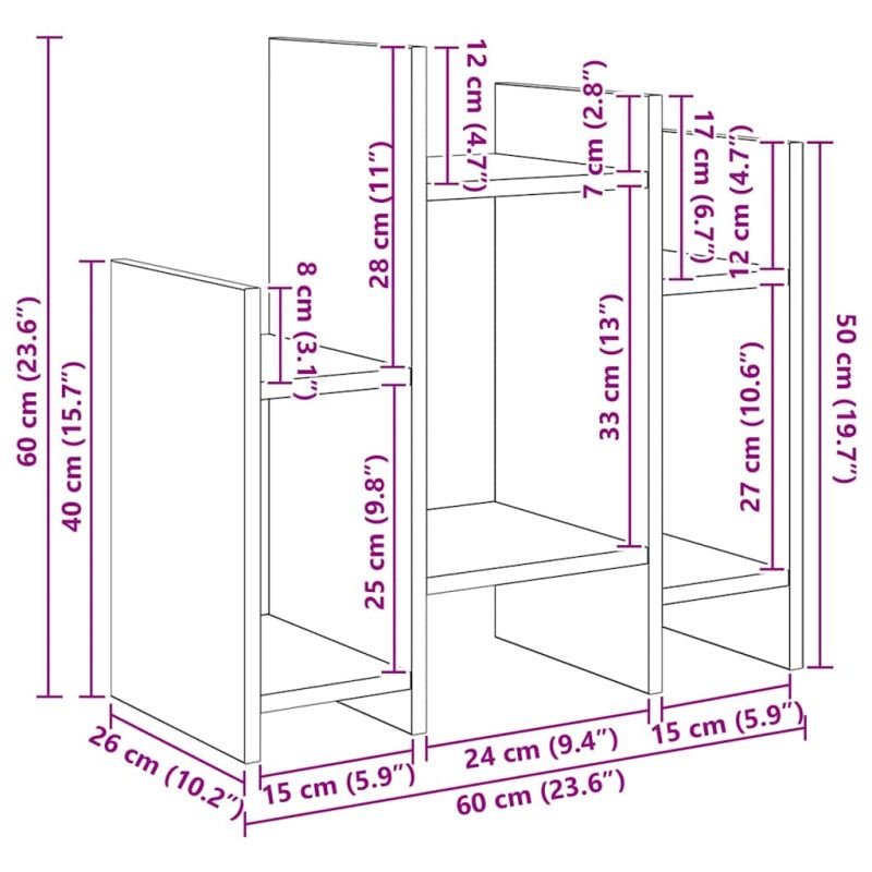 • Общи размери: 60 x 26 x 60 см (Д x Ш x В)