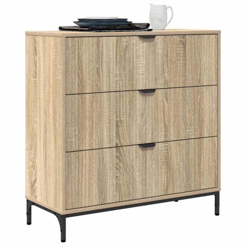 Този модерен прав шкаф с чекмеджета комбинира стил и функционалност, което го прави отличен вариант за вашето пространство. С изчистен дизайн и минимални детайли, той се вписва идеално в трапезарии, кухни и всекидневни. Отлично организира основни вещи, независимо дали е за всекидневната или като елегантен допълнителен елемент в трапезарията и кухнята. Конструкцията от инженерна дървесина му придава солидност и висока издръжливост, допринасяща за модерната му визия. Осигурява място за съхранение и елегантен плот, подходящ за вашите декоративни акценти. Структура от инженерна дървесина Изработен от инженерна дървесина, този шкаф е стабилен и надежден, идеален за ежедневно ползване. Материалът осигурява дълготрайност и запазва първоначалния си вид с времето. Изисканото покритие допълва модерния му дизайн. Функционално решение за съхранение С просторни отделения и чекмеджета, шкафът предлага идеално място за организиране на различни основни вещи. Вътрешността е умело проектирана, за да подреди всякакви предмети, осигурявайки лесен достъп и подреден вид. Многофункционалният му дизайн отговаря на различни нужди в кухнята или всекидневната. Практични компоненти Здравите метални крака осигуряват надеждна опора, а дългата барна дръжка улеснява отварянето. Устройството за прикрепяне към стената предотвратява преобръщане, като прави използването на шкафа още по-безопасно. Многофункционално разположение в стаята Идеален за различни домашни среди, шкафът лесно се адаптира към нуждите ви. Отличен за съхранение в трапезарията или кухнята, ненатрапчивата му елегантност допълва всяка декорация. Лесна поддръжка Поддържането на шкафа е лесно благодарение на повърхността, която се почиства с кърпа. Без агресивни химикали, следвайки инструкциите за грижа, той запазва красотата и полезността си години напред.