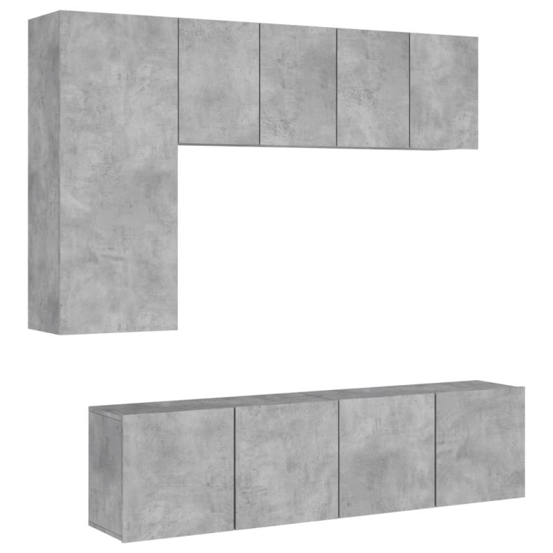 ТВ стенни модули, 5 части, бетонно сиви, инженерно дърво