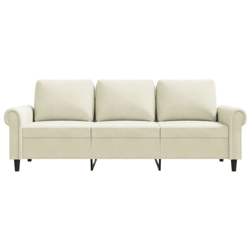 Този 3-местен диван е отлично място за вашето време за разговори, четене, гледане на телевизия или просто почивка. Той е предназначен да бъде фокусна точка във вашия дом. Меко кадифе: Кадифето е мека и луксозна материя, която се отличава с гъста купчина равномерно отрязани влакна за гладка повърхност. Кадифената тъкан се отличава с меко усещане, което я прави приятна на допир.Здрава и стабилна рамка: Металната рамка на тапицирания диван осигурява здравина и стабилност.Удобна седалка: Диванът е много удобен с дебело подплатените седалки, подлакътниците и възглавниците за гърба.Привличащ вниманието дизайн: С изчистен, но модерен дизайн, това канапе е предназначено да привлича вниманието във вашата стая. Максимално 110 кг на седалка. Съобразете се с риска от открит огън и други източници на силна топлина в близост до продукта.