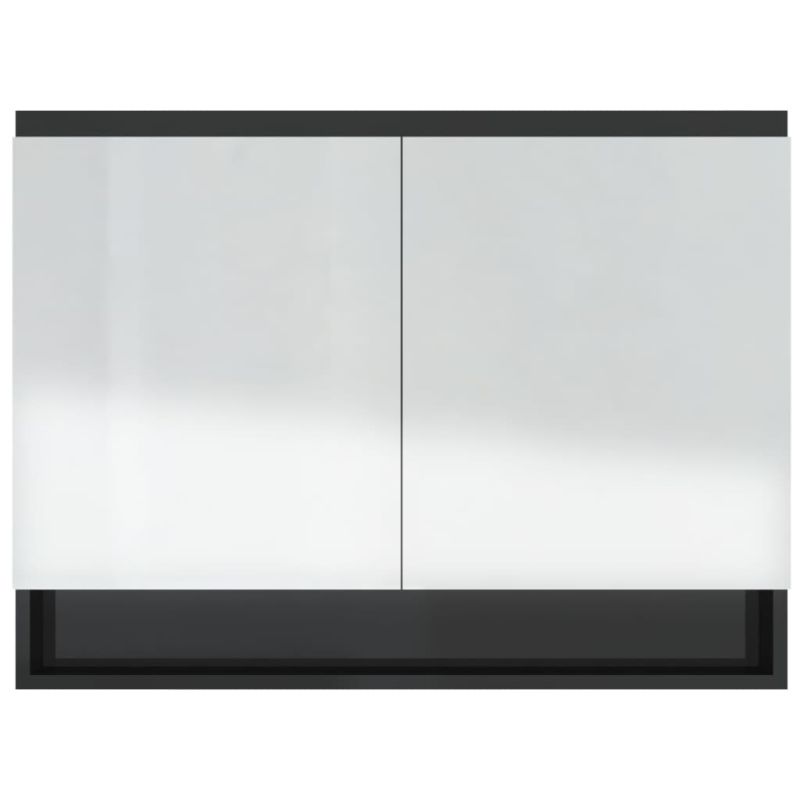 Шкаф с огледало за баня, 80x15x60 см, МДФ, сияйно черно