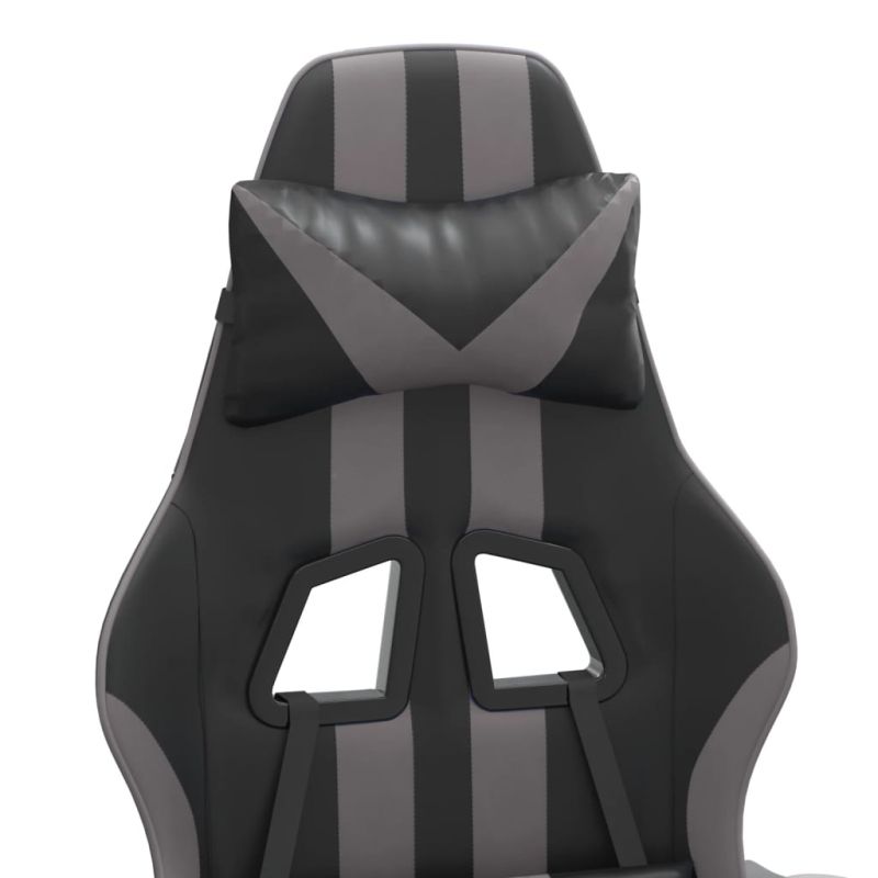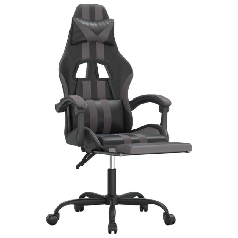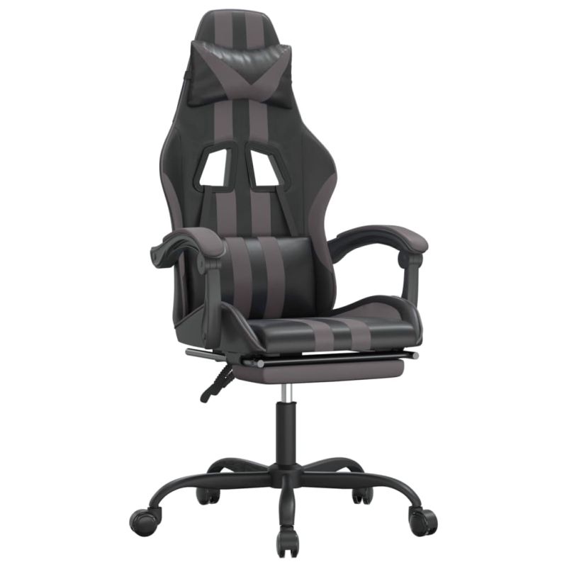 Начало Дом и градина Мебели Столове Геймърски столове Гейминг стол с опора за крака, черно и cиво, изкуствена кожа