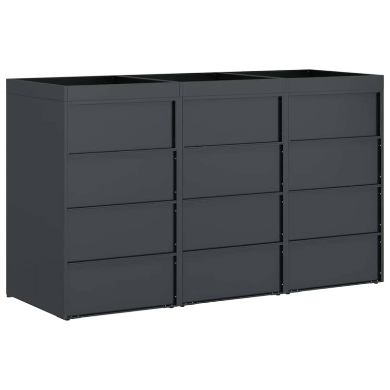 Контейнер за съхранение на 3 коша Антрацит Стомана