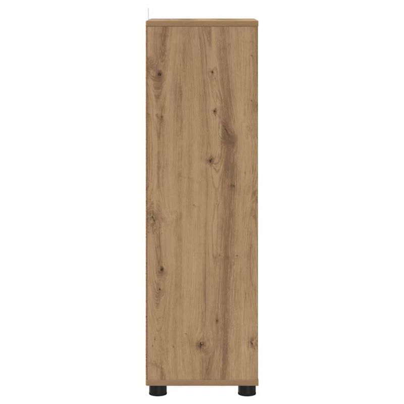 Този модерен банен кабинет съчетава стилен дизайн и практичност. Компактната му форма е чудесен избор за всяка баня, осигурявайки организирано решение за съхранение. С гладка текстура и минималистичен стил, кабинетът се вписва в съвременните пространства и поддържа безпорядъка под контрол. Регулируемата височина позволява персонализиране, което го прави универсален за хора, ценящи както естетика, така и функционалност. Ползи от материала: Изработен от инженерна дървесина, този кабинет е влагоустойчив, идеален за баня. Осигурява дълготрайност и естетичен вид, който издържа на ежедневна употреба. Функционални компоненти: Проектиран е с плоскости, врати с панти и чекмеджета, което подобрява удобството и капацитета за съхранение. Дървесната конструкция предоставя организирано пространство за различни елементи. Регулируема функция: Кабинетът включва ръчно регулиране на височината, позволяващо коригиране по размер на рафтовете. Това е чудесно за различни нужди за съхранение. Универсални приложения: Идеален за жилищни бани, кабинетът предлага много място за козметика и почистващи препарати. Модерният му дизайн е подходящ и за минималистични интериори, осигурявайки баланс между стил и функция. Грижа и поддръжка: Лесно се поддържа - просто избърсвайте с кърпа, за да запазите вида му. Сглобяването по инструкции и закрепването му за стената гарантира безопасност и дълготрайност.