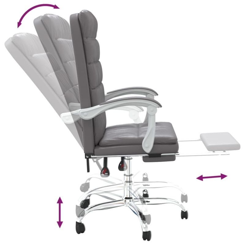 Отличаващ се с минималистичен дизайн, този модерен наклоняем офис стол съчетава елегантност и комфорт, което го превръща в атракция във вашето работно пространство. Издържлива изкуствена кожа: Първокласната изкуствена кожа е изключително издръжлив материал. Устойчива е на петна, което я прави лесна за почистване с влажна кърпа. Гладката повърхност също така придава луксозен вид и красотата на истинската кожа.Регулируема облегалка и височина: Той е специално проектиран с функция за накланяне, така че да можете да регулирате облегалката и опората за крака по вкуса си. Използвайте лоста, за да регулирате височината на седалката си по ваш вкус.Удобен дизайн: Въртящият се на 360 градуса дизайн позволява по-широк обхват на движение. Освен това е удобно да се придвижвате с въртящите се колелца.Здрава и стабилна рамка: Рамките от метал и шперплат осигуряват здравина и стабилност. Забележка:Всеки продукт се доставя с ръководство за сглобяване в кашона за лесно сглобяване.