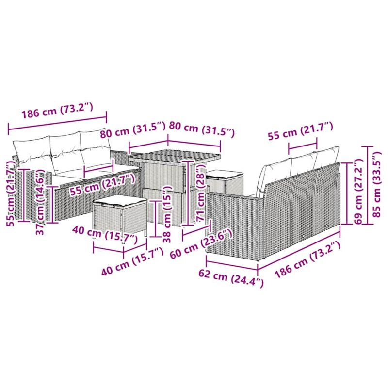 Този модулен градински диван комплект е стилен и практичен, перфектен за вашето outdoor пространство. Съвременният му дизайн пасва на всяко място – в градината, на терасата или балкона. Здравите, но леки материали и елегантните линии го правят не само красив, но и удобен за социализиране в пролетта и лятото. Гъвкавите конфигурации ви дават свобода да създавате различни аранжименти за всяко събитие. Материали: Изработен от качествен полиратан и масивна акациева дървесина, този комплект е издръжлив и стилен. Полиратанът е UV устойчив, което е чудесно за outdoor употреба, а акацията добавя нотка елегантност. Тези материали гарантират дълготрайност и лесна поддръжка. Включени компоненти: Комплектът идва с готов гръб, седалка с тънка подложка и сваляеми възглавници с цип. Постовете осигуряват стабилна опора за безопасно сядане. Всеки компонент добавя комфорт и универсалност за приятно преживяване. Функции / Дизайн: Диван комплектът включва регулируема по височина масичка, която лесно преминава от кафе до трапезна маса. Модулният дизайн позволява бързо пренареждане, а лекият конструктивен профил улеснява преместването. Препоръчителна употреба: Подходящ за градини, тераси или балкони, този комплект е идеалният вариант за outdoor среди, където се събирате с приятели или просто релаксирате. Непрезентационната елегантност му позволява да се впише във всеки стил. Грижа и поддръжка: За да поддържате мебелите в добро състояние, покривайте ги, когато не се използват, и чистете с суха кърпа. Лесната поддръжка помага комплектът да изглежда добре и да функционира безпроблемно дори след дълго outdoor излагане.