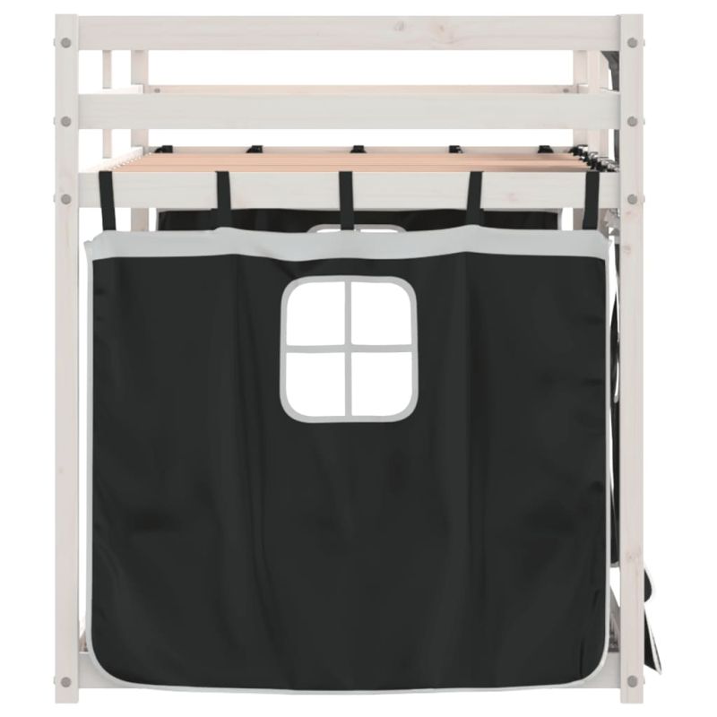 Двуетажно легло със завеси, бяло и черно, 90x200 см, бор масив