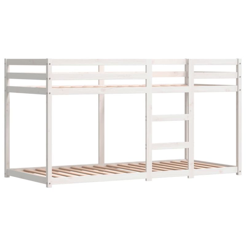 Това дървено двуетажно легло е елегантно и функционално, което го прави идеално допълнение към всяка стая с ограничено пространство. Масивно борово дърво: Това двуетажно легло е изработено от масивно борово дърво за стабилност и издръжливост. Боровата дървесина е с продълговати шарки, а чеповете придават на материала характерния му рустик вид.Страхотно забавление: Можете да комбинирате завесите с ниското двуетажно легло, за да създадете тайната база на вашето дете, осигурявайки страхотно забавление преди лягане и добавяйки фокусна точка към спалнята!Предпазни парапети: Горното легло се предлага с предпазни парапети от всичките 4 страни, така че детето ви да може да спи, без да се притеснявате, че ще падне.Удобна стълба: Това двойно двуетажно легло има стълба, която осигурява удобство за качване и слизане от леглото. Освен това носи радост и превръща стаята им в закрита детска площадка. Добре е да се знае:Към това легло не е включен матрак. Ние предлагаме разнообразна селекция от матраци. Можете да проверите нашия магазин за подходящ матрак. Внимание:За да предотвратите преобръщане, този продукт трябва да се използва с предоставеното устройство за закрепване на стена. ПРЕДУПРЕЖДЕНИЕ. Това легло не е подходящо за деца под шест години поради риск от нараняване при падане ПРЕДУПРЕЖДЕНИЕ. Двуетажните легла/високите легла могат да представляват сериозен риск от нараняване от задушаване, ако не се използват правилно. Никога не прикрепвайте и не закачайте към която и да е част на двуетажното легло/високото легло предмети, които не са предназначени за използване с леглото, например, но не само, въжета, струни, шнурове, куки, колани и чанти ПРЕДУПРЕЖДЕНИЕ. Децата могат да попаднат в капан между леглото и стената, скатния покрив, тавана, съседни мебели (напр. шкафове) и други подобни. За да се избегне рискът от сериозни наранявания, разстоянието между горната предпазна преграда и прилежащата конструкция не трябва да надвишава 75 мм или трябва да е повече от 230 мм ПРЕДУПРЕЖДЕНИЕ. Не използвайте двуетажното легло/високото легло, ако някоя конструктивна част е счупена или липсва. ПРЕДУПРЕЖДЕНИЕ. Този продукт трябва да бъде прикрепен към стена или строителна конструкция.