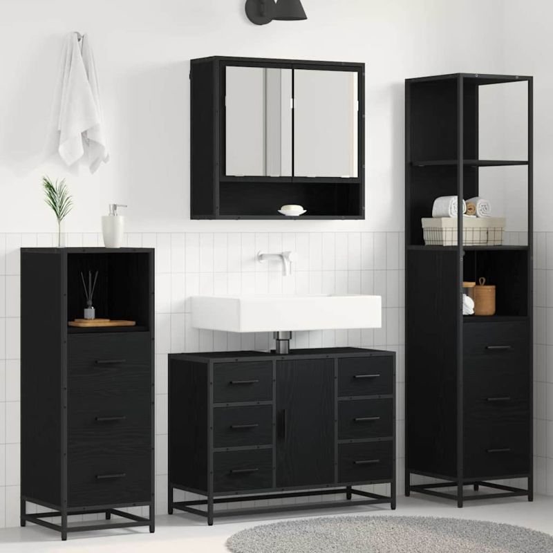 Комплект мебели за баня с рафт 3 pcs Черния дъб Инженерно дърво