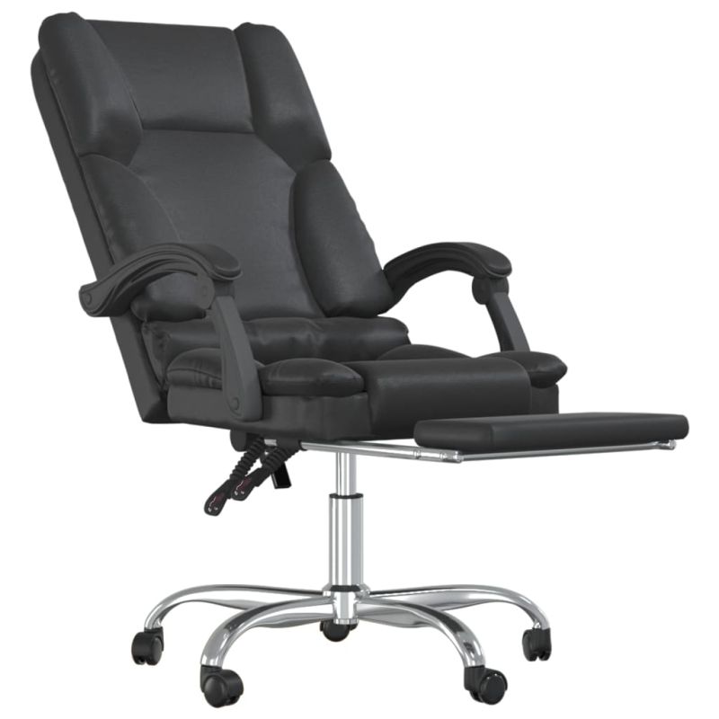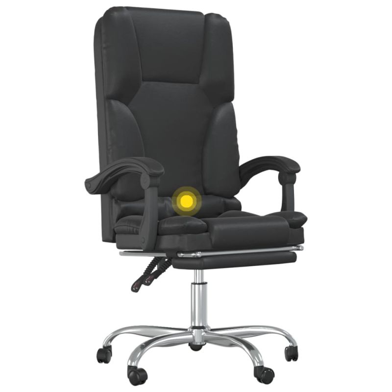 Масажен наклоняем офис стол, черен, изкуствена кожа