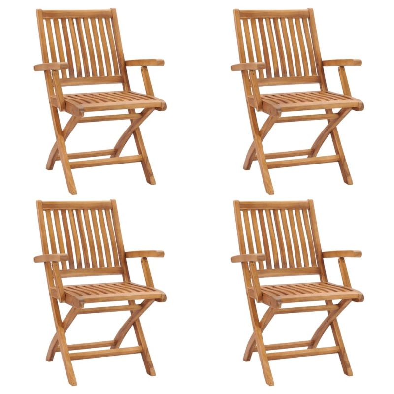 Сгъваеми градински столове, 4 бр, тик масив