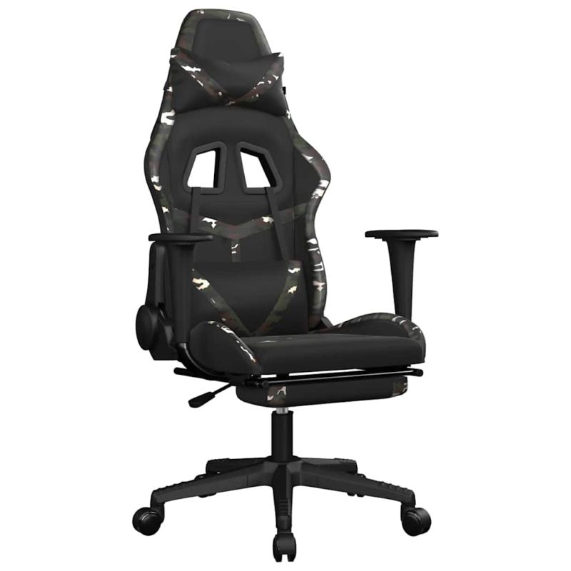 Масажен гейминг стол с опора черно-камуфлаж изкуствена кожа