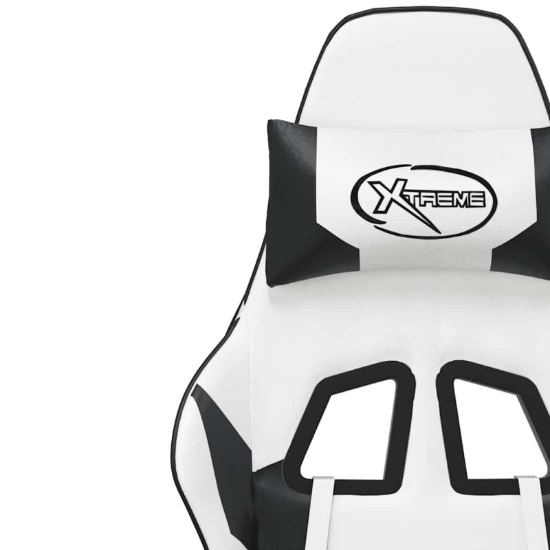 Масажен гейминг стол с опора за крака Бял-черно изкуствена кожа