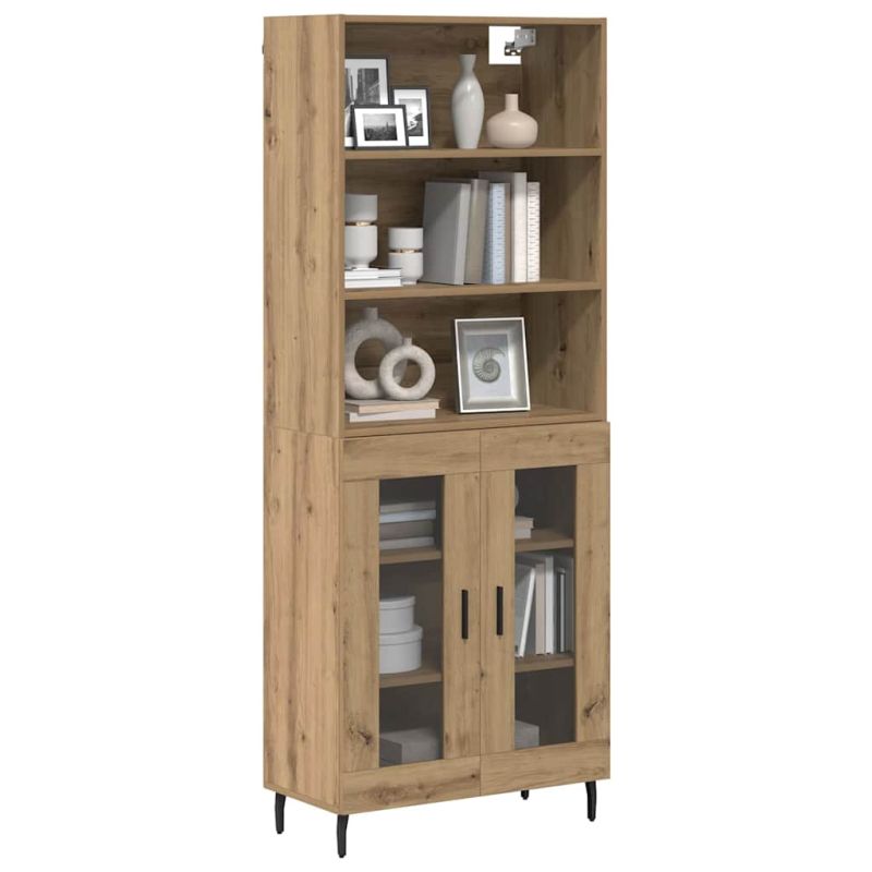 Висок шкаф Дъб 69,5 x 34 x 180 см Инженерна дървесина и стъкло