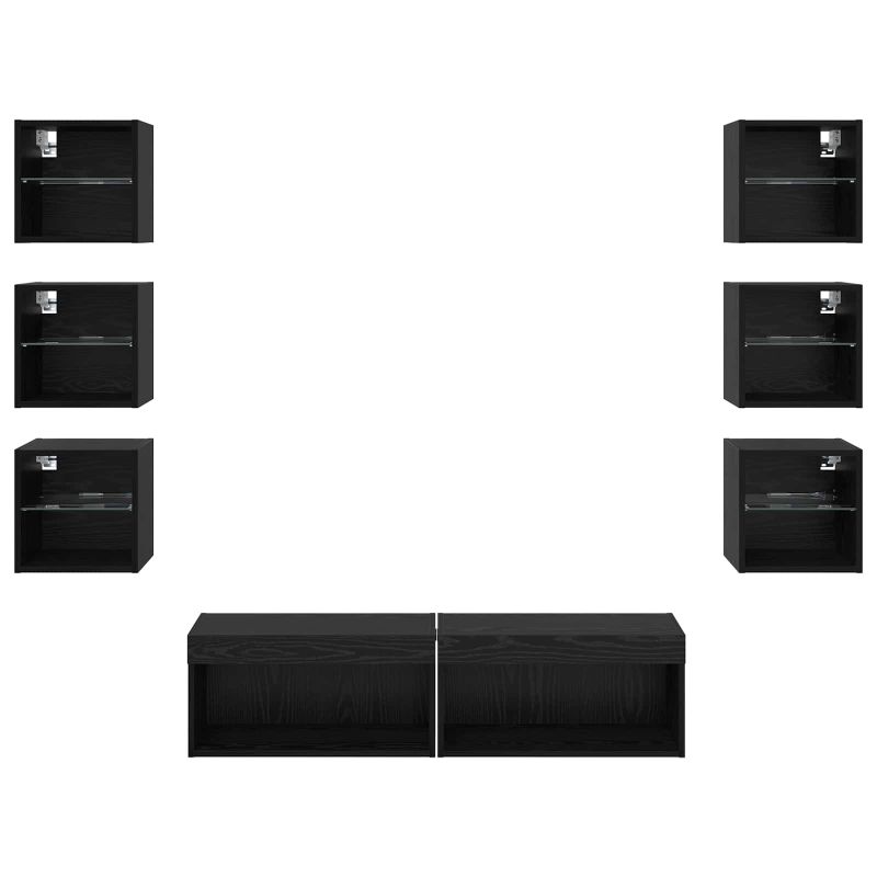 ТВ шкаф С LED лентисти светлини 8 pcs Черния дъб Стъкло