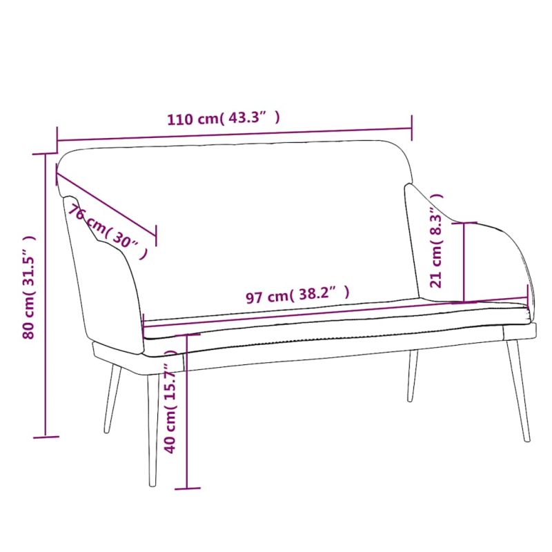 Тази пейка е отлично място за вашето време за разговори, четене, гледане на телевизия или просто за почивка. Тя е предназначена да бъде фокусна точка във вашия дом. Меко кадифе: Кадифето е мека и луксозна материя, която се отличава с гъста купчина равномерно отрязани влакна за гладка повърхност. Кадифената тъкан се отличава с меко усещане, което я прави приятна на допир.Удобно изживяване на седалката: Седалката, включваща тапицирана наклонена облегалка и дълбока седалка, е идеална за освобождаване на натрупаното напрежение и умора. Освен това дебело подплатената седалка е много удобна.Здрава и стабилна рамка: Седалката на пейката се поддържа от метална рамка, което я прави здрава и стабилна. Забележка:Всеки продукт се доставя с ръководство за сглобяване в кашона за лесно сглобяване.