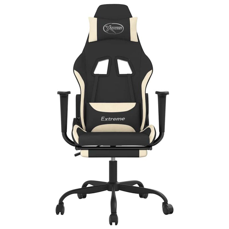 Масажен гейминг стол с опора за крака, черно и кремаво, плат