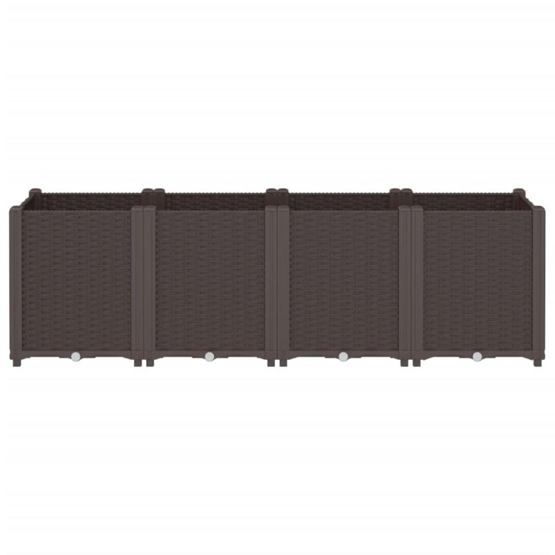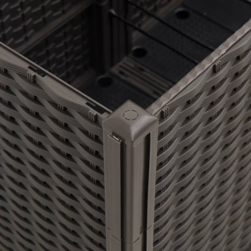 Този градински сандък е отличен избор за катерливи растения във вашата градина, вътрешен двор и тераса. Издръжлив материал: Полипропиленът е популярна пластмаса, която също е един от най-използваните материали при мебелите за открито. Той е лек, здрав и устойчив на удар.Щедър капацитет: Външната кашпа осигурява много място за отглеждане на всички ваши зеленчуци, цветя и други растения.Практичен дизайн: Идеалният долен слой помага за задържане на влагата и позволява лесен дренаж. Модулен дизайн: Този сандък се състои от 4 кутии за цветя, които могат свободно да се комбинират според вашите нужди.Красива визия на ратан: Плантерът за вътрешен двор е проектиран с визия на ратан, внасяйки елегантен чар във вашето жилищно пространство.