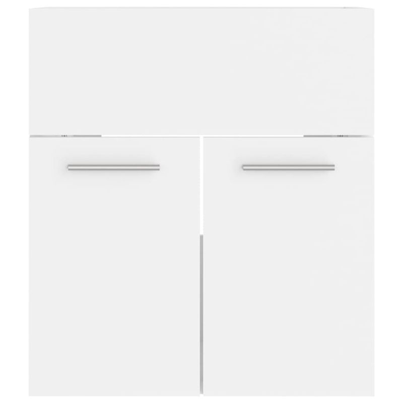 С този стилен комплект мебели за баня можете да създадете допълнително място за съхранение в банята с впечатляващ и подреден вид. Изчистените линии и елегантен дизайн ще се съчетаят перфектно с вашата баня. Комплектът мебели се състои от шкаф за мивка, нисък шкаф, вградена мивка и огледало. Шикозният шкаф за мивка има 1 отделение, а горната му част е идеална за поставяне на мивката. Ниският шкаф разполага с 2 отделения, предлагащи достатъчно място за съхранение на предмети в банята. Изработена от керамика, мивката може да служи не само като съд за ежедневна употреба, но и като декоративно допълнение в жилищното ви пространство. Благодарение на своя модерен дизайн тази мивка определено ще подхожда на всеки интериор. Умивалникът е снабден с преливник за изтичане на вода, когато се препълни. Огледалото също придава отличен вид на декора на дома ви. Освен това този комплект за баня се почиства лесно с влажна кърпа. Моля, обърнете внимание: Доставката включва кран и преливник. Децата трябва да бъдат наблюдавани, за да се гарантира, че не играят с уреда. Пазете децата далеч от зоната за сглобяване. Внимание: Прочетете внимателно инструкциите преди употреба и ги запазете за по-нататъшни справки.