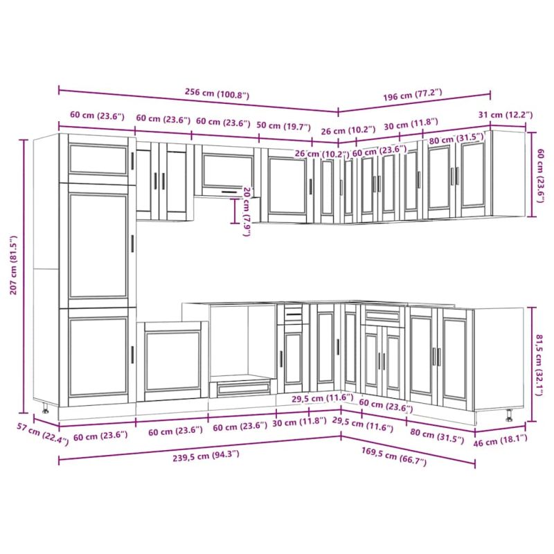 Комплект кухненски шкафове от 14 части Porto, инженерно дърво