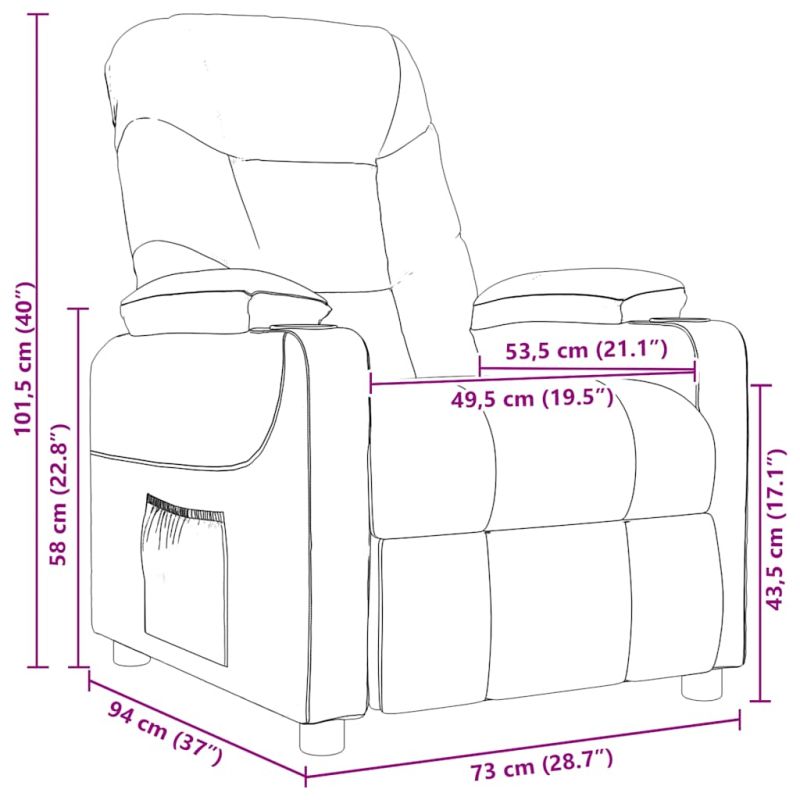 Облегнете се и се отпуснете в този изключително комфортен масажен стол! Функция за ръчно накланяне: Накланящият се стол е специално проектиран с 3 позиции на наклон, така че да можете да регулирате ръчно облегалката и поставката за крака според вашето удобство.Функция за вибрация: Представените 6 масажни точки ви позволяват да изпитате по-целенасочен масаж. Освен това включеното ръчно управление ви позволява да избирате различни програми за масаж. Функцията за масаж се захранва от USB конектора, но сертифицираният 5V USB източник на захранване не е включен.Удобно седене: Дебело подплатената седалка, облегалката и широките подлакътници, покрити с текстил, осигуряват уютно и топло усещане, което ви кара да се чувствате като в прегръдка, докато седите. Тъканта се отличава със семпъл и изчистен вид и е дишаща и издръжлива.Здрава и стабилна рамка: Рамката, изработена от дърво и метал, осигурява здрава структура и стабилност. Този накланящ се фотьойл е удобен и издръжлив. Този уред може да се използва от деца над 8 години и лица с намалени физически, сензорни или ментални възможности или липса на опит и знания под надзор или ако са получили инструкции относно употребата на уреда по безопасен начин и разбират възможните опасности. Децата не трябва да си играят с уреда. Почистването и потребителската поддръжка не трябва да се извършват от деца без надзор. Захранването трябва да бъде само с безопасно изключително ниско напрежение, съответстващо на маркировката върху уреда. Включете USB конектора на уреда в USB гнездото на захранването. Моля, обърнете внимание да се използва само сертифицирано захранване DC 5V. По-високото напрежение може да доведе до прегряване и до повреда на устройството, както и до потенциален риск от пожар.