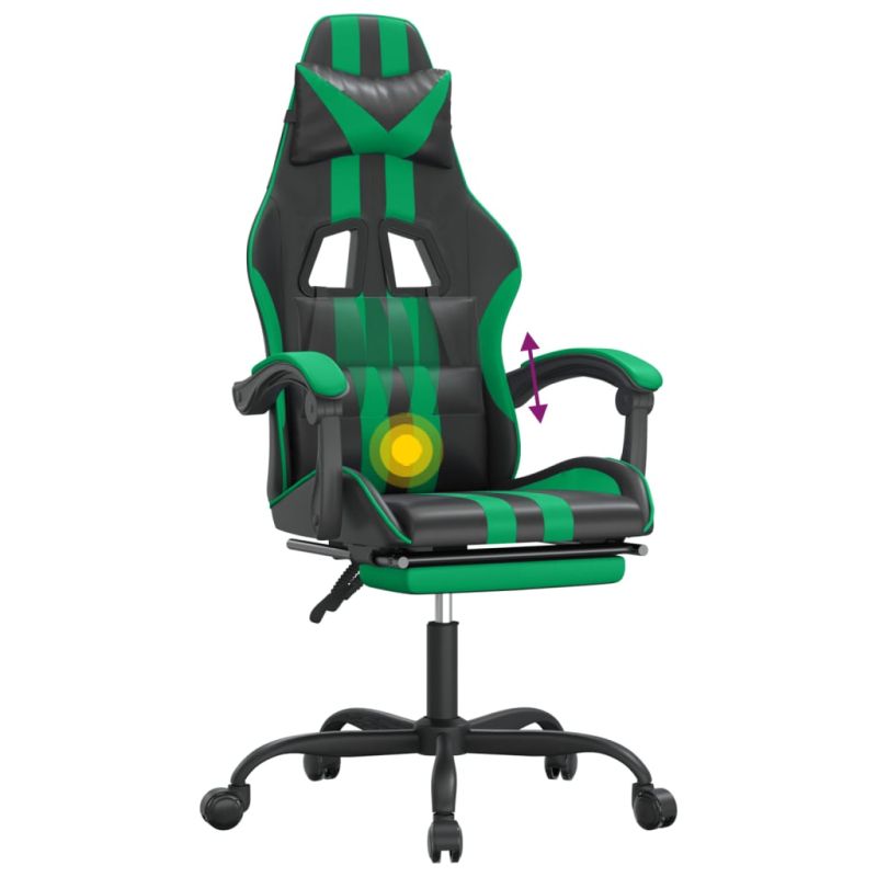 Въртящ гейминг стол опора за крака черно-зелен изкуствена кожа