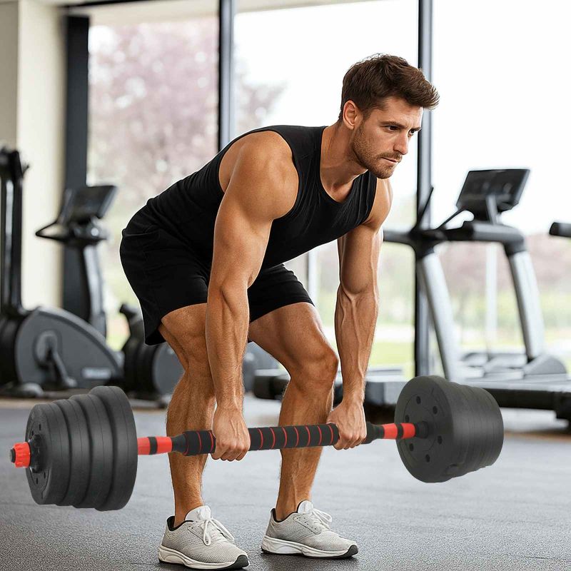 2-в-1 комплект дъмбели и щанга 30кг 30кг Черен и Червен