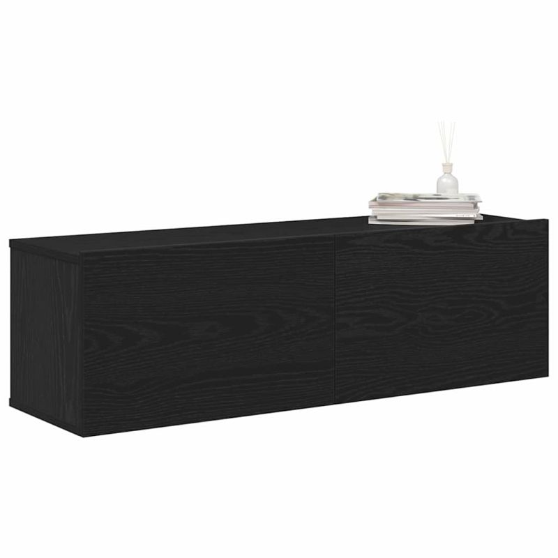 ТВ шкаф 2 pcs Черно 100 x 30 x 30 cm Инженерно дърво