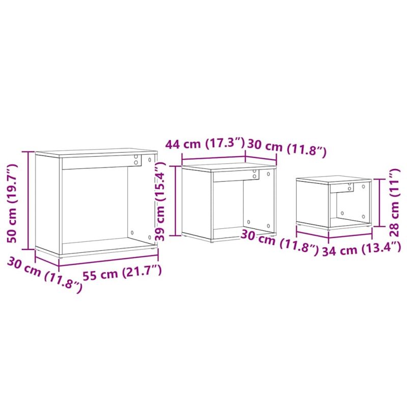 Н nesting маса 3 pcs Черния дъб Инженерно дърво