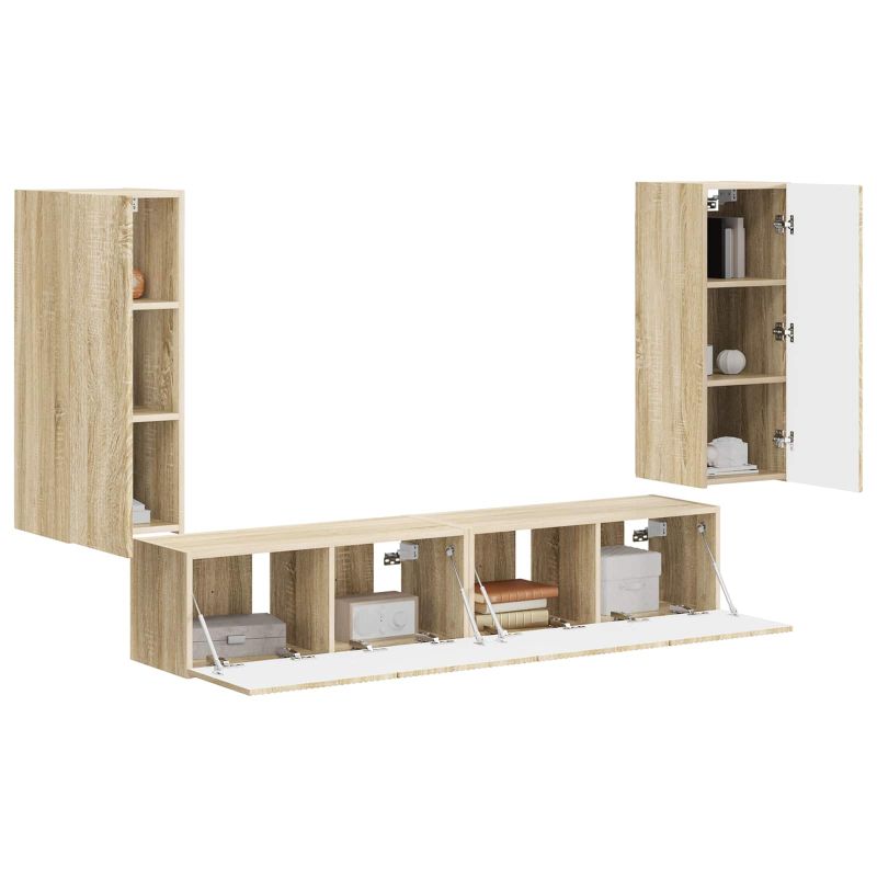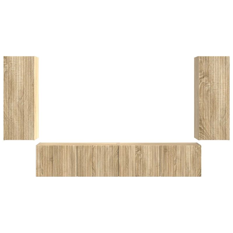 Начало Дом и градина Мебели Секции и поставки за телевизори Комплект за стена на телевизор 4 pcs Сонома дъб Инженерно дърво