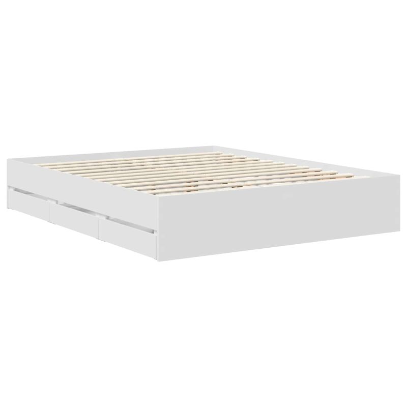 Рамка за легло с чекмедже Бяло 160 x 200 cm Инженерна дървесина