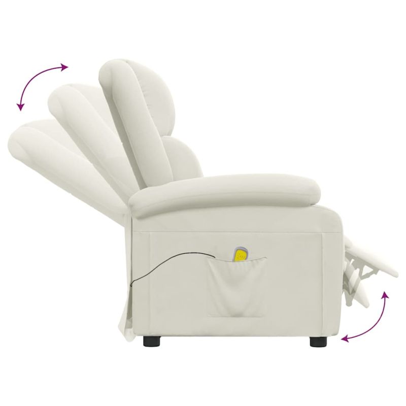 Облегнете се и се отпуснете в този изключително комфортен масажен стол! Функция за ръчно накланяне: Накланящият се стол е специално проектиран с 3 позиции на наклон, така че да можете да регулирате ръчно облегалката и поставката за крака според вашето удобство.Функция за вибрация: Представените 6 масажни точки ви позволяват да изпитате по-целенасочен масаж. Освен това включеното ръчно управление ви позволява да избирате различни програми за масаж. Функцията за масаж се захранва от USB конектора, но сертифицираният 5V USB източник на захранване не е включен.Удобно седене: Дебело подплатената седалка, облегалката и широките подлакътници, покрити с кадифе, осигуряват уютно и топло усещане, което ви кара да се чувствате като в прегръдка, докато седите. Кадифето е мека и удобна материя, която се усеща приятно върху кожата.Здрава и стабилна рамка: Рамката, изработена от дърво и метал, осигурява здрава структура и стабилност. Този накланящ се фотьойл е удобен и издръжлив.