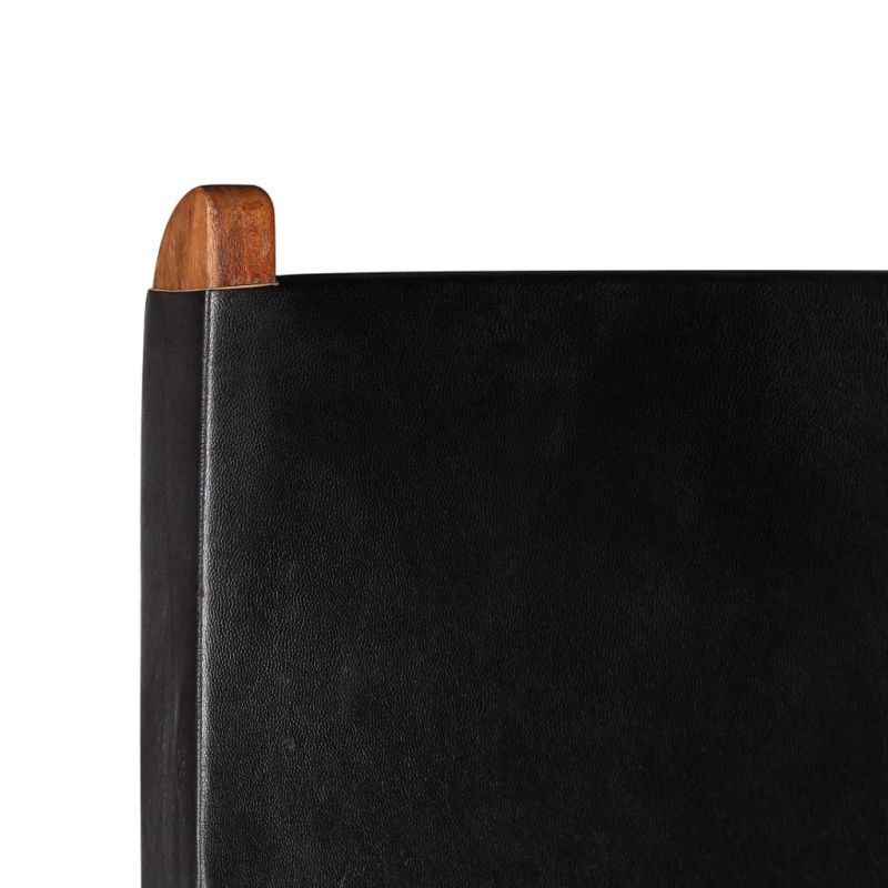 Сгъваем релакс стол, черен, естествена кожа