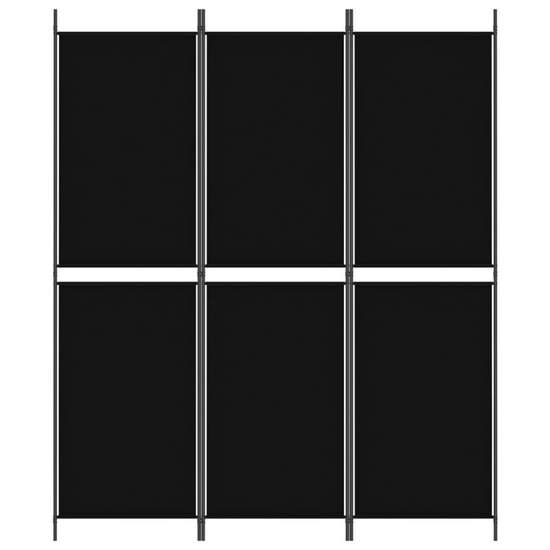 Параван за стая, 3 панела, черен, 150x180 см, плат